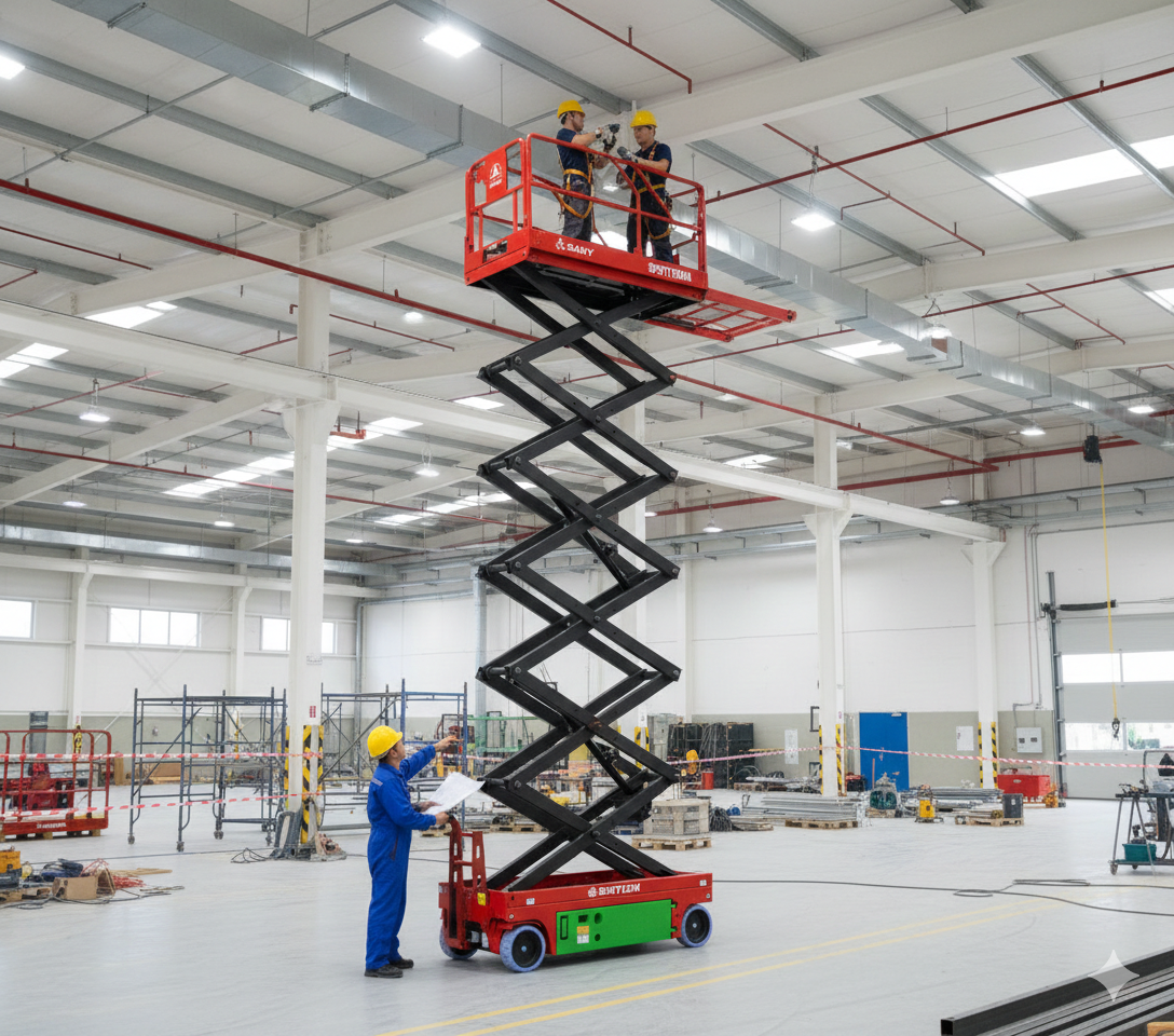 SANY SPS1012HA makaslı platform, 10 m platform yüksekliği, 12 m çalışma yüksekliği ve 350 kg kaldırma kapasitesine sahiptir. Kompakt tasarımı, dar alanlarda sorunsuz çalışma sağlar ve yüksekte verimli ve güvenli çalışma için üstün manevra kabiliyeti sunar.